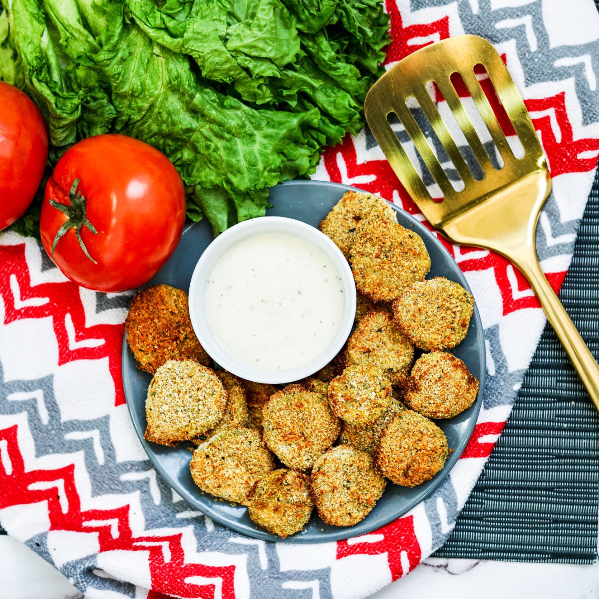 The key is draining those pickle chips really well before breading. Excess moisture = soggy coating. Pat them dry, get a good bread crumb seal, spray generously with cooking spray, and let the air fryer work its magic.