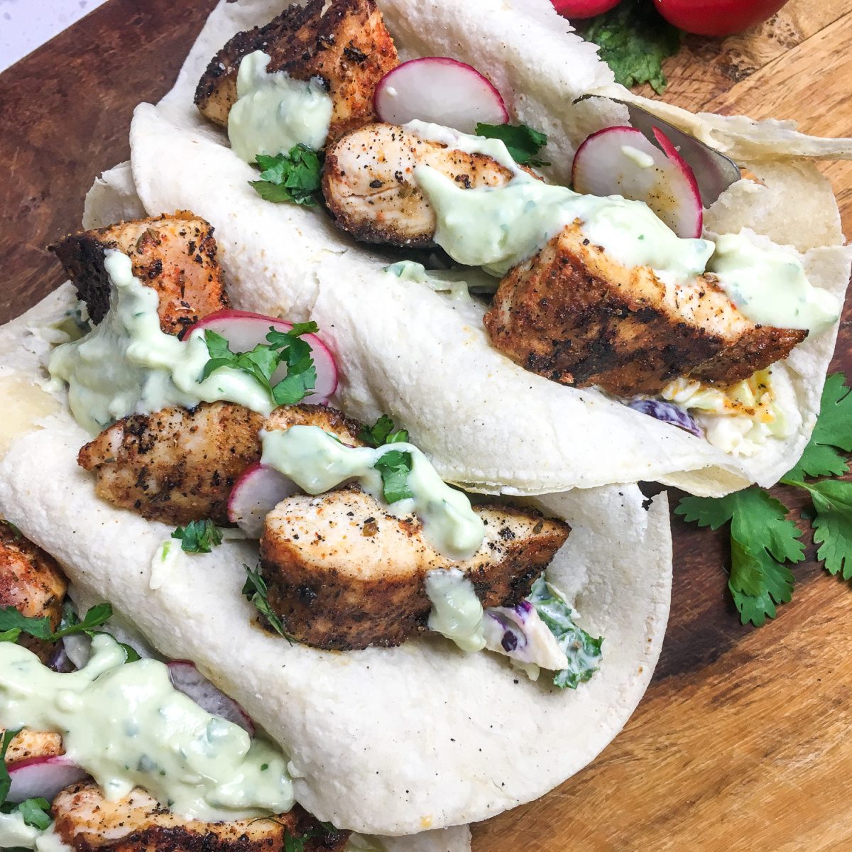 Blackened Fish Tacos with Creamy Coleslaw Crispy blackened fish, cool creamy slaw, and all the toppings you can pile on. Fish tacos get a bad reputation for being complicated. These prove otherwise in about 30 minutes.