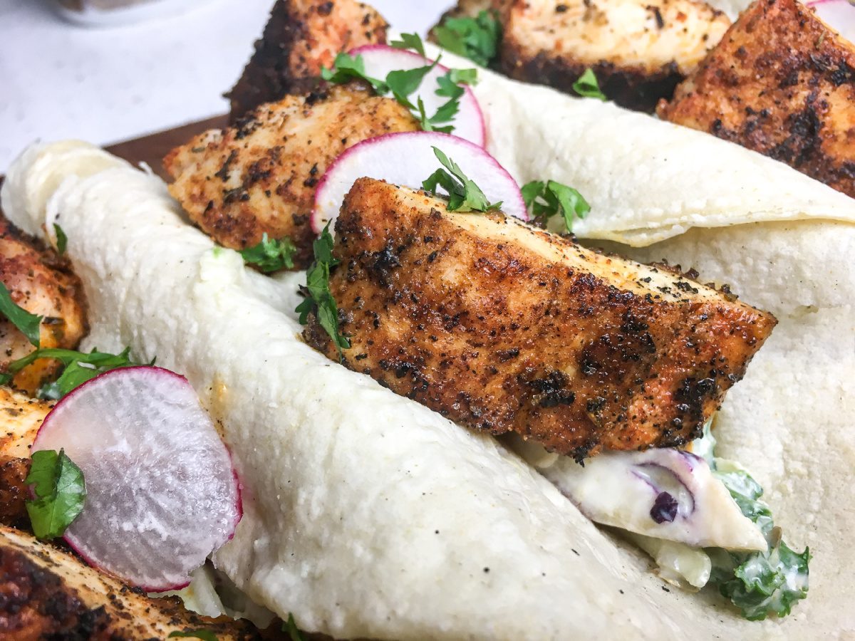 The blackened seasoning is where all the flavor lives. Smoked paprika, garlic, onion, thyme, oregano, and just enough cayenne to make it interesting without overwhelming. You can dial the heat up or down depending on who’s eating. The homemade coleslaw uses Greek yogurt instead of mayo, which keeps it lighter and adds a nice tang that works perfectly with the lime and cumin.